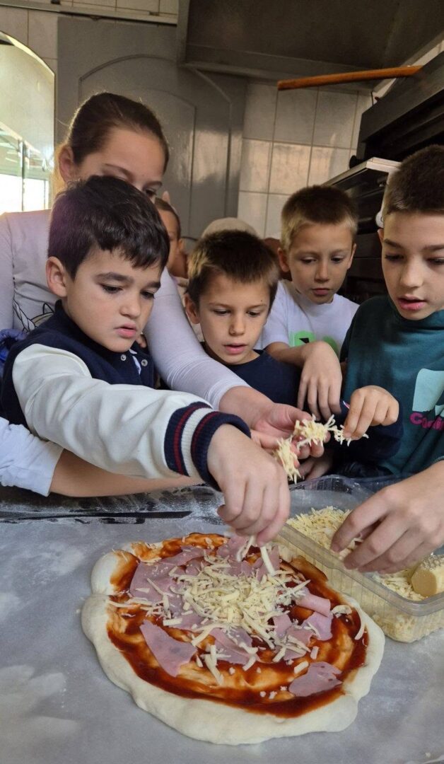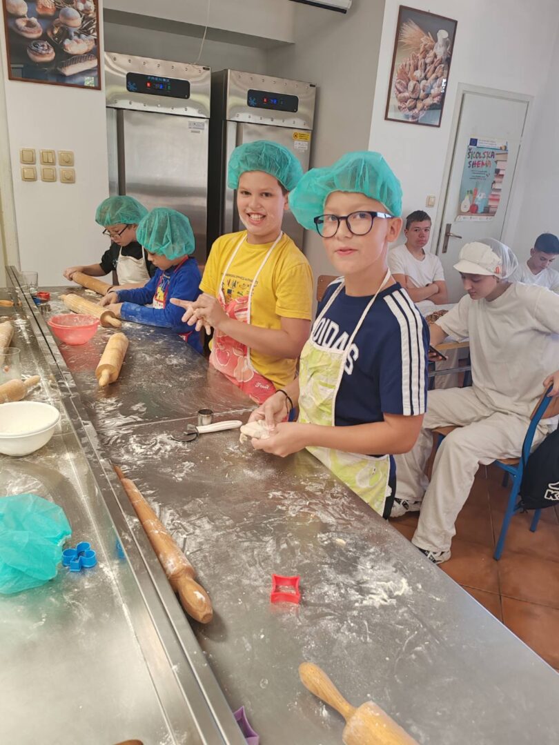 Učenici prvih i trećih razreda produženog boravka na trenutak su postali mali pekari. Naučili su koji su sastojci potrebni da bi se napravili kruh i kiflice, a zatim prešli u kuhinju gdje su zamijesili tijesto i napravili mekane i slasne kiflice. I to nije bilo sve, nakon školske kuhinje, svoje vještine su pokazali su i u pekarnici „Slavonija“. Pekarice i prodavačice su im najprije objasnile kako funkcionira rad u pekarnici, a potom su učenici zajedničkim snagama napravili svoju pizzu i kiflice.